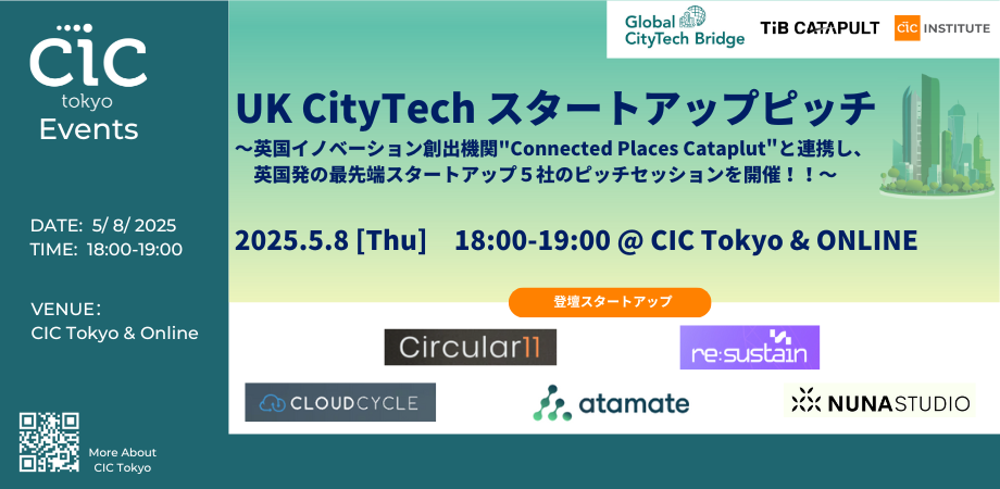 TIB Catapult「Global CityTech Bridge」プログラムにおいて、英国のイノベーション創出機関"Connected Places Cataplut"と連携... powered by Peatix : More than a ticket.