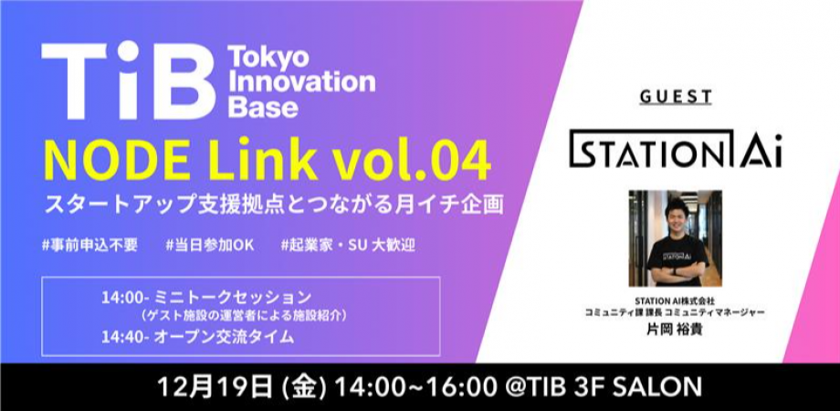 NODE Link vol.04〜全国のスタートアップ支援拠点とつながる〜 TIBは多様なプレイヤーを結び付ける"結節点"の取組の一つとして、東京、そして全国のスタートアップ支援拠... powered by Peatix : More than a ticket.