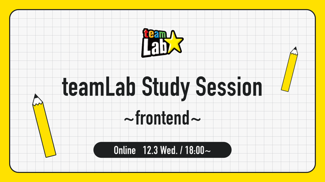 ## 🎈イベントについて チームラボのフロントエンド班がチームラボ内で定期的に実施している勉強会を、今回はフロントエンドの技術に興味ある参加者を募集し、オンラインで配信します! 第二回目となる今回は、若手メンバーからフロントエンドスペシャリスト※まで、幅広い年次のエンジニアが発表します! 普段のチームラボ内勉強会と同じように質疑応答の時間も設けますので、気になることがあれば参加者の皆様もエンジニアに直接質問することが可能です。 実践的な知識のキャッチアップやチームラボの雰囲気を知る機会にしていただけたら嬉しいです。皆様のご参加を心よりお待ちしております! こんな方にお...