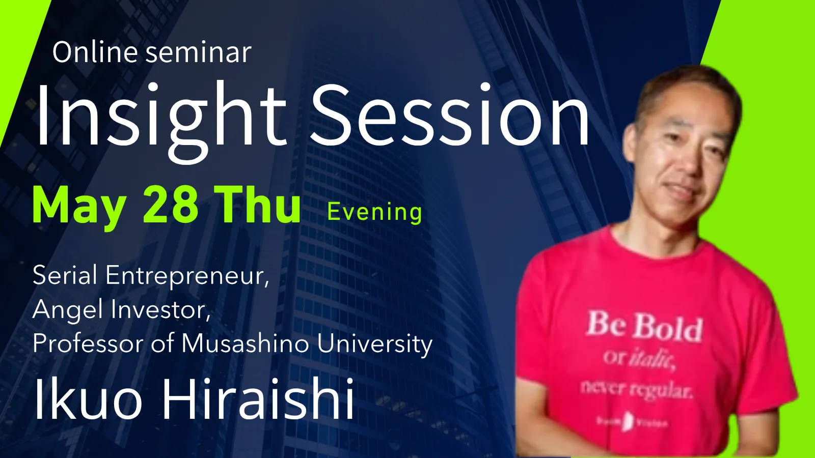 本Webinarでは、シリアルアントレプレナーであり武蔵野大学アントレプレナーシップ学部教授である平石郁生氏をゲストに迎え、ドラッカーの一節「The entrepreneur always searches for change, responds to it, and exploits it as an opportunity.」を対談の中心軸に据えたFireside Chatをお届けします。