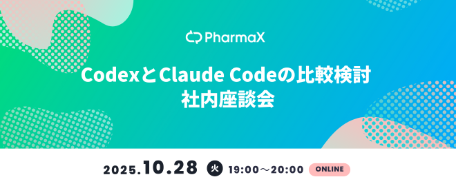 # 概要 「Codex」や「Claude Code」をはじめとするコーディング支援ツールは、数ヶ月単位で新しいバージョンや機能が登場し、開発体験そのものが変わり続けています。 PharmaXでは、社内の開発プロジェクトにおいて複数のAIコーディングツールを実際に試し、コード補完や設計支援、レビューなど、さまざまな開発フェーズでの使い勝手を検証してきました。 これまでは主に「Claude Code」を中心とした開発フローを構築していましたが、最近では「Codex」も併せて試しながら、それぞれの使い勝手や特徴を検証しています。 本イベントは実際に両ツールを日常開発の中で使ってみたエンジ...