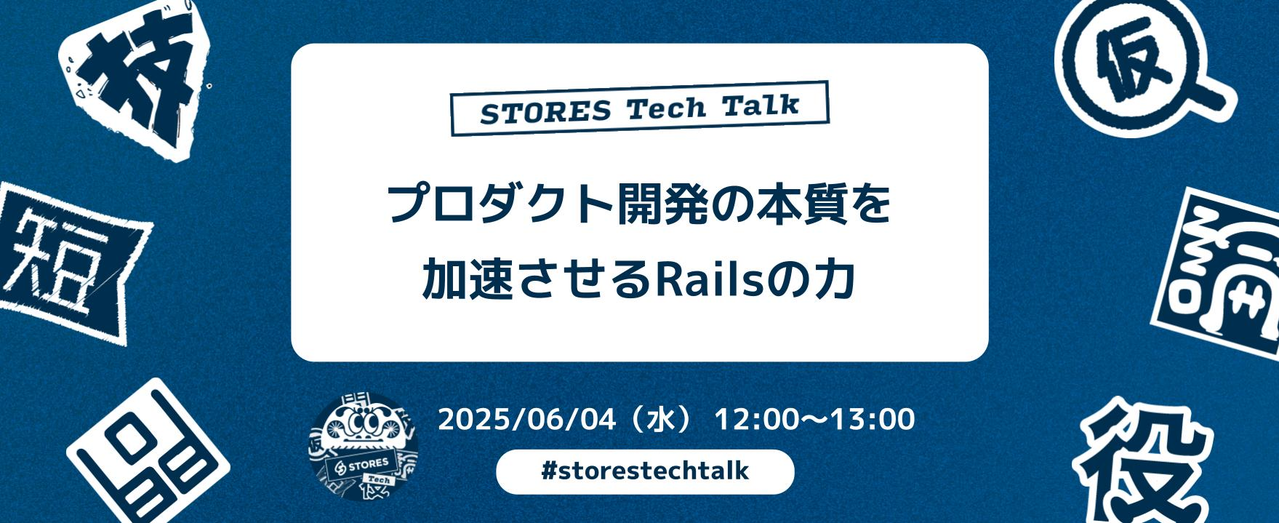 プロダクトの成長とともにRails Wayから自然と離れていきませんか?STORESでも同じ道を歩んできました。 複雑化していく開発の中で STORES がどうRailsと向き合ってきたかを3名のエンジニアから共有します。Rails開発に携わる方々にとって、明日からの開発に活かせる実践的な内容をお届けしますので、ぜひご参加ください! Zoomウェビナーで開催いたしますので、ランチをとりながらの耳だけ参加や途中入退出も自由です。 ## 📆 開催情報 日時 : 2025年6月4日 (水) 12:00 〜 13:00(11:55 開場) 開催場所 : オンライン (配信URLは参加...