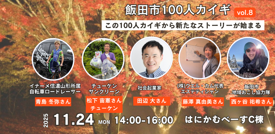 \2025年11月24日 〈飯田市100人カイギ〉第8回目開催!/ 飯田市に関わる100人のトークを起点に、飯田市の魅力を再確認!新しいつながりで明日が楽しくなる!地域がもっと好き... powered by Peatix : More than a ticket.