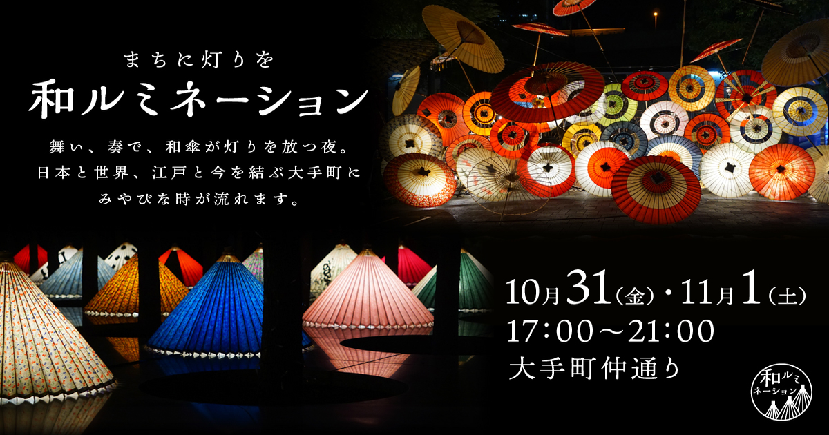 大手町仲通りに約300本の和傘行灯が灯る「和ルミネーション2025」。伝統美と都会の街並みが溶け合う特別な夜をお楽しみください。CONTENTS01.幻想的に広がる“和の灯り”02.体験しながら楽しむコンテンツ03.初日限定の特別パフォーマンス04.パレットプラザ大手町フィナンシャルシティ店で記念写真をプリントサービス!01.幻想的に広がる“和の灯り”和傘300本が彩る大手町仲通り。和紙を透かす柔
