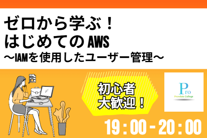 # 【初心者歓迎&オンライン開催】ゼロから学ぶ!はじめてのAWS ~IAMを使用したユーザー管理~ ## 【実施内容】 AWSでIAM(Identity and Access Management)を使用して、IAMユーザー・IAMグループ・IAMポリシーの作成や権限設定を実践形式で学ぶハンズオンセミナーです。 初心者の方でもわかりやすいステップで進行しますので、安心してご参加いただけます。 ## 【参加対象者】 * AWSに興味がある初心者の方 * AWSを業務で使用しており、IAMの理解を深めたい方 * エンジニアへのキャリアチェンジを目指している方 * クラ...