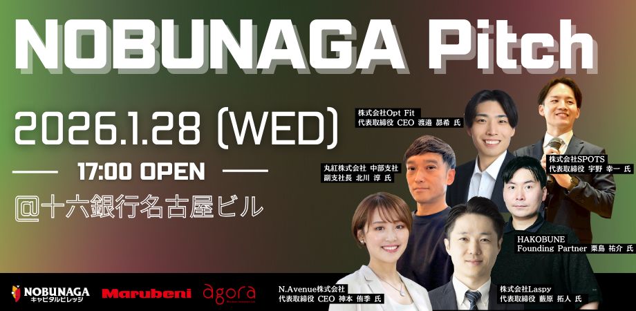 \NOBUNAGA Pitch /@TechGALA by Marubeni Innovation Lab Agora × NOBUNAGAキャピタルビレッ... powered by Peatix : More than a ticket.