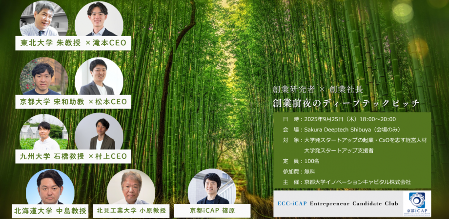 【アカデミアの研究成果 × CxO人材・共創パートナー】 京都iCAPが2017年から継続する「アカデミアと社会をディープテックで繋ぐ」ピッチイベント。これまでに、日本... powered by Peatix : More than a ticket.