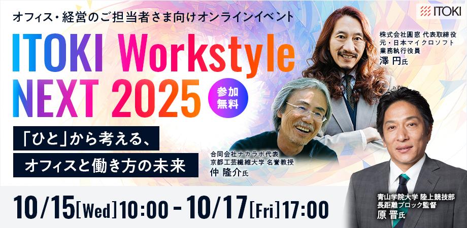 ITOKI Workstyle NEXT 2025「ひと」から考える、オフィスと働き方の未来10/15(水)10:00 ~ 10/17(金)17:00 オンライン開催 ... powered by Peatix : More than a ticket.