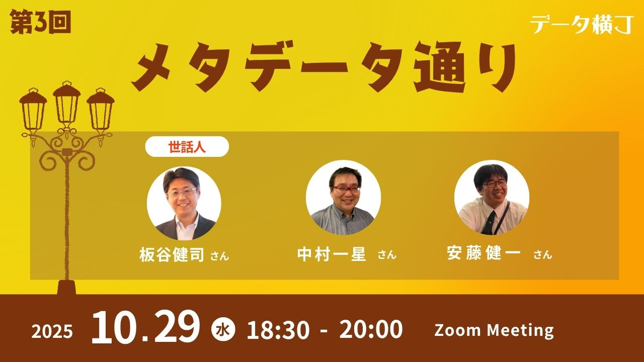 メタデータ通りは、メタデータに関わる人が実践的な課題や知見を共有し、仲間と学び合う場です。ともにメタデータ管理の未来をつくります。 前回は、「メタデータがなぜ必要か」「どのように定義されるべきか」といった“考え方”を中心に議論しました。その中で、「では実際にどう進めていくのか?」という声が多くあがり、参加者の投票の結果、次回テーマは 「進め方:メタデータの拡充・推進手順」 に決定しました。実際の進め方や運用の工夫をテーマに、現場での知恵を持ち寄りながら考えます。 💡 ゆるい宿題 ・自社やチームでの最小共通辞書をイメージしてみる ・アクティブ・メタデータをどのように回収できそう...