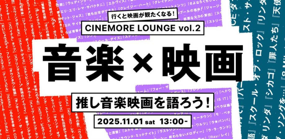 【11.01 ファンイベント開催!】音楽×映画 推し音楽映画を語ろう! 行くと映画が観たくなる!CINEMOREラウンジ vol.2 前回ご好評いただいた、 ... powered by Peatix : More than a ticket.