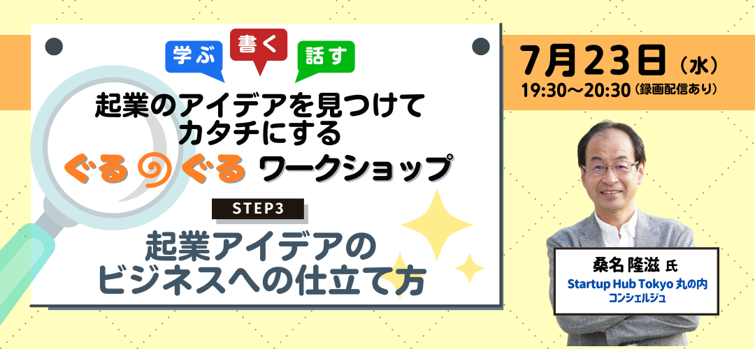 起業のアイデアを見つけてカタチにするぐるぐるワークショップ<STEP3:起業アイデアのビジネスへの仕立て方>
