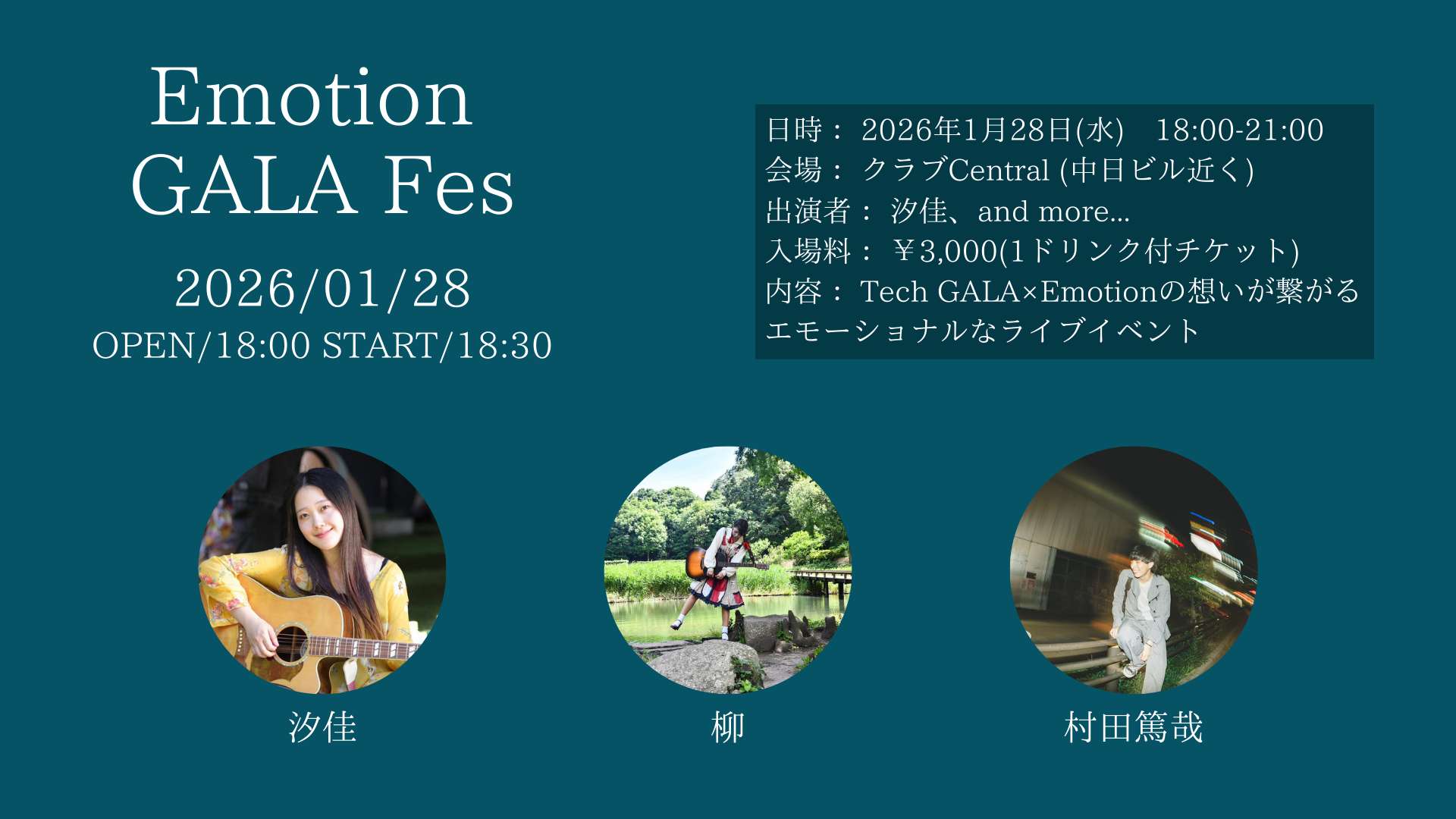 Emotionは、アーティスト一人ひとりの音楽活動に対する背景や想い、今伝えたい音楽に本気で向き合うライブイベントです。