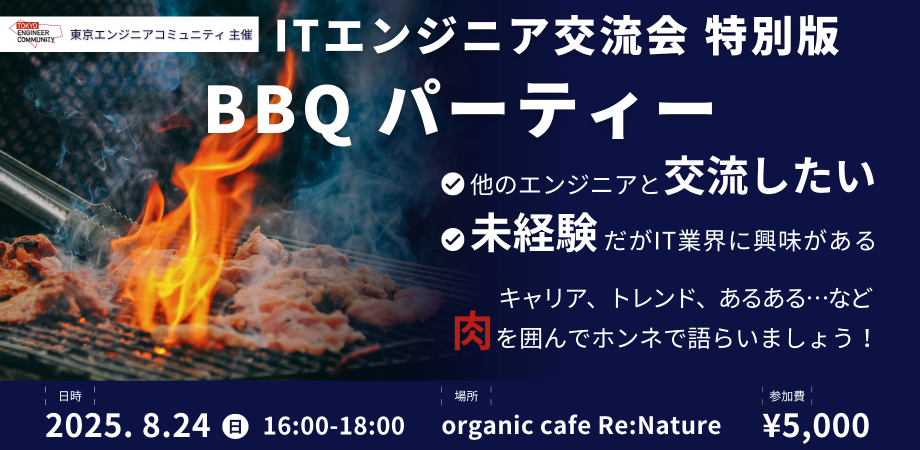 ITエンジニア交流会〜IT業界で働く人・働きたい人が集まる交流会【特別版】 【原宿開催 2025年8月24日(日) 16:00〜18:00】 毎回満員御礼の当イベントですが、今回は... powered by Peatix : More than a ticket.