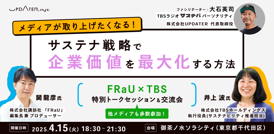 サステナビリティ戦略の最前線を学び、ビジネス成長につなげるミートアップ~メディアが取り上げたくなる!サステナ戦略で企業価値を最大化する方法~ サステナビリティ対応は、単なるコスト... powered by Peatix : More than a ticket.