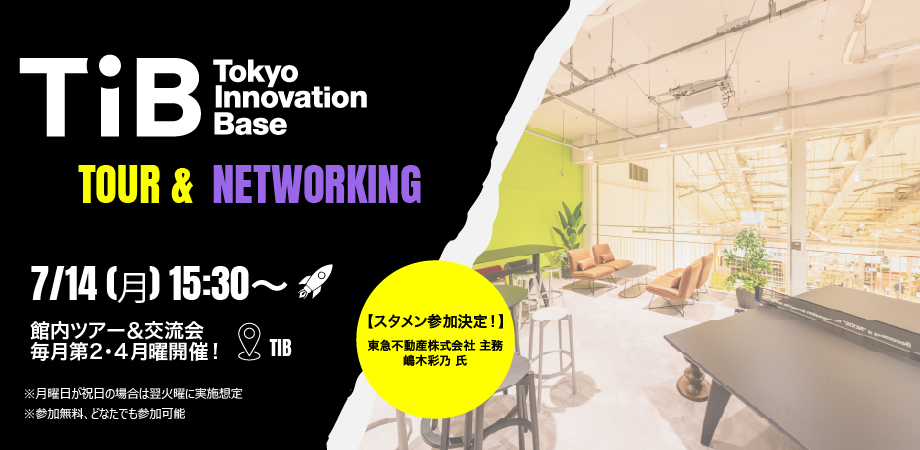 5月より「Tokyo Innovation Base(TIB)」定期ツアー&交流会が始まりました! この度TIBでは、すでにTIBをご活用いただいている皆様、これからTIBを活用し... powered by Peatix : More than a ticket.