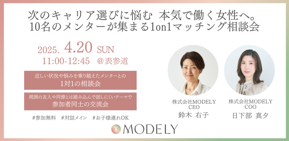 ■イベント概要 株式会社MODELYは「女性のキャリア・ハイを、もっともっと。」をコンセプトに、「仕事を人生のひとつの柱として向き合っている女性が、自身と境遇が近く、共感できる身近... powered by Peatix : More than a ticket.