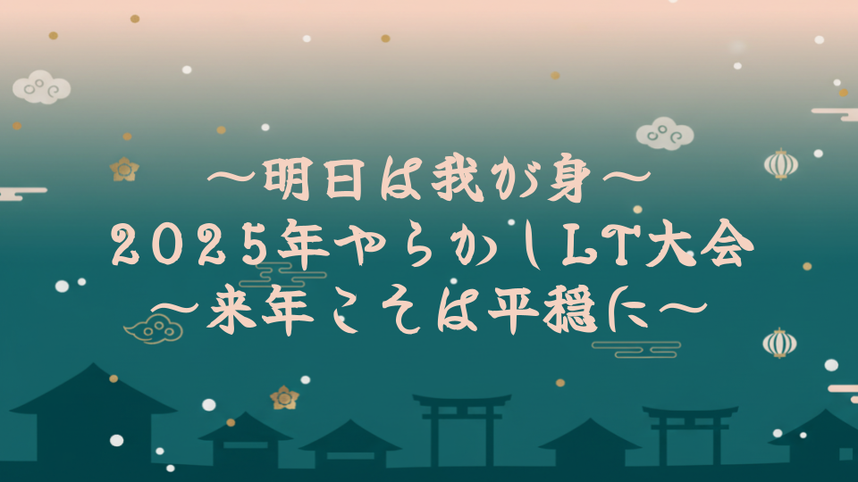 ## この会の趣旨 2025年も残りあと少しになってきましたね...! 本会は、主にエンジニアリングの現場で稀によく発生する「やらかし」「本番障害」「ヒヤリハット」「壮大なバグ」などなどを、笑いと学びの種に変えて、供養と反省をしようという趣旨で企画されました。 心とポストモーテムに刻まれた痛い思い出を、赤裸々に語り合いましょう!そして来年こそは平穏に過ごすために人の失敗から学んでいきましょう! ## 公募LTのテーマについて あなたが経験した、「冷や汗をかいた、やらかした失敗談」をトークしてくれる方を募集します。 2025年のやらかしだと望ましいですが、過去のやらかしでも良いので、...
