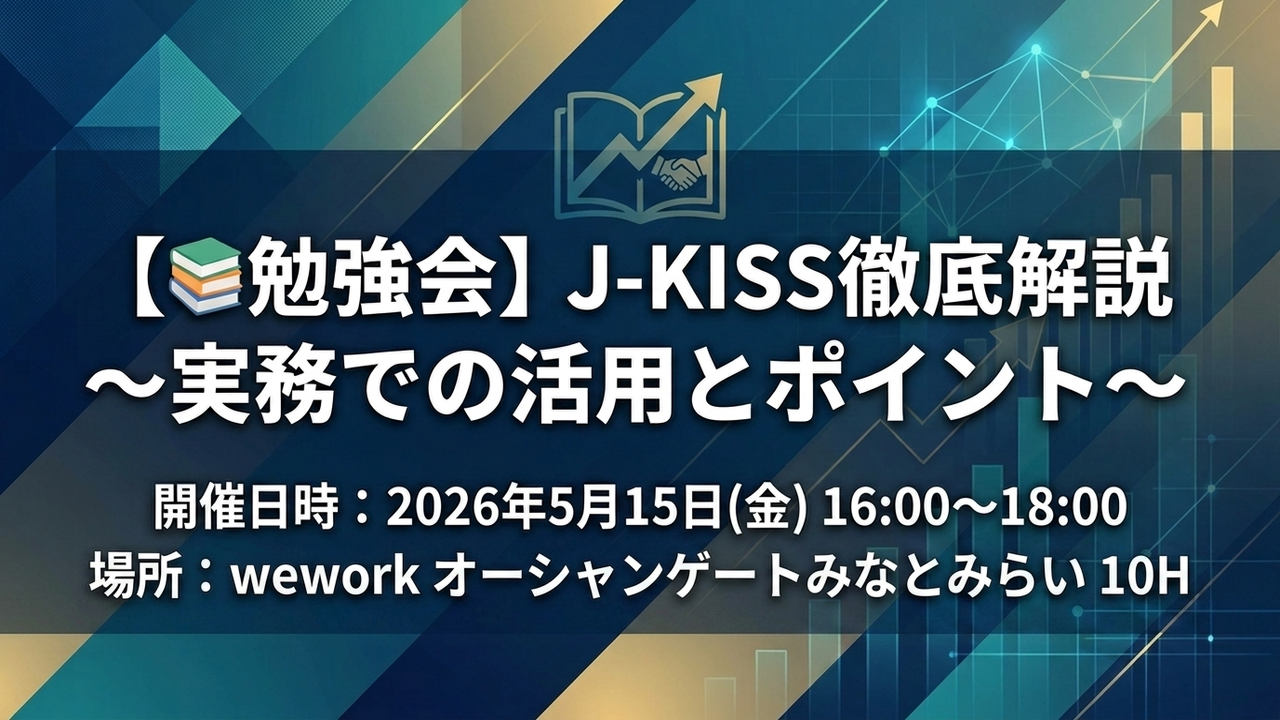 スタートアップの資金調達で広く活用されている「J-KISS(簡易新株予約権)」について、基本的な考え方から、実務での使われ方・注意点までをわかりやすく解説する勉強会を開催します。