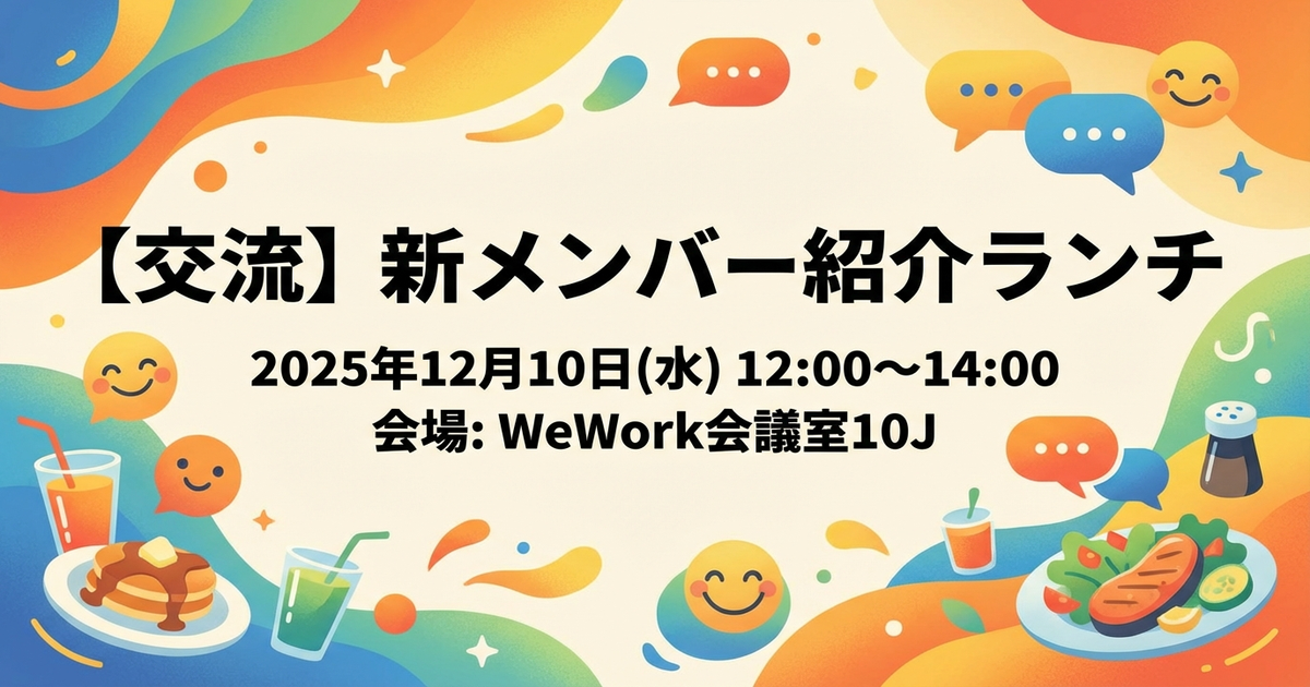 今回は、新たにコミュニティに参加されたGenicsの栄田さんと、KSAP採択者の西村さんをお招きし、ランチを囲んでカジュアルな交流会を開催します。新しい出会いや情報交換の機会として、ぜひご参加ください。