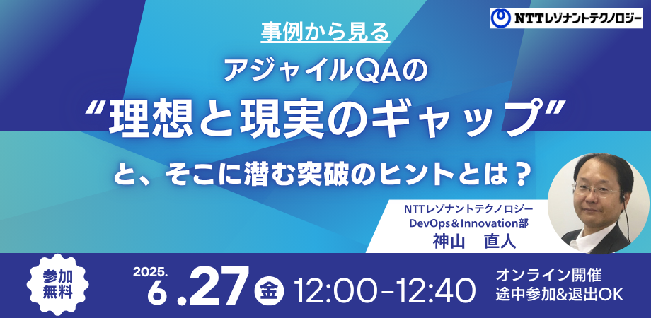 ### 事例から見る | アジャイルQAの“理想と現実のギャップ”と、そこに潜む突破のヒントとは? アジャイル開発において、 「品質が追いつかない」 「テストが間に合わない」 そんな悩みを感じたことはありませんか? 本ウェビナーでは、現場で実際に直面した「QAのジレンマ」や「テスト運用の限界」に向き合い、そこから生まれた “再設計されたテストプロセス” についてご紹介します。 登壇者自身の経験から、アジャイル開発における品質確保と開発スピードの両立を目指すための考え方と工夫をお伝えします。 ### このような方におすすめ! * アジャイル開発チームで、QAを兼任している方 ...