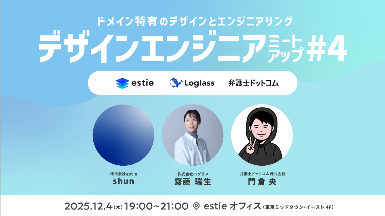 # デザインエンジニアMeetup! #4 ドメイン特有のデザインとエンジニアリング ## 概要 デザインとエンジニアリングを横断して問題解決を行い、プロダクトのデリバリーやアイデア検証を高速に行うデザインエンジニア。しかし、デザインエンジニアの数はまだ限られており、情報共有の機会も多くはありません。 そこで私たちは、デザインエンジニア同士が知見を共有し、交流を深める場として「デザインエンジニアMeetup」を開催しています。 今回のテーマは 「ドメイン特有のデザインとエンジニアリング」。 各社ドメイン特有のユニークな機能があると思います。 例えば、弊社...