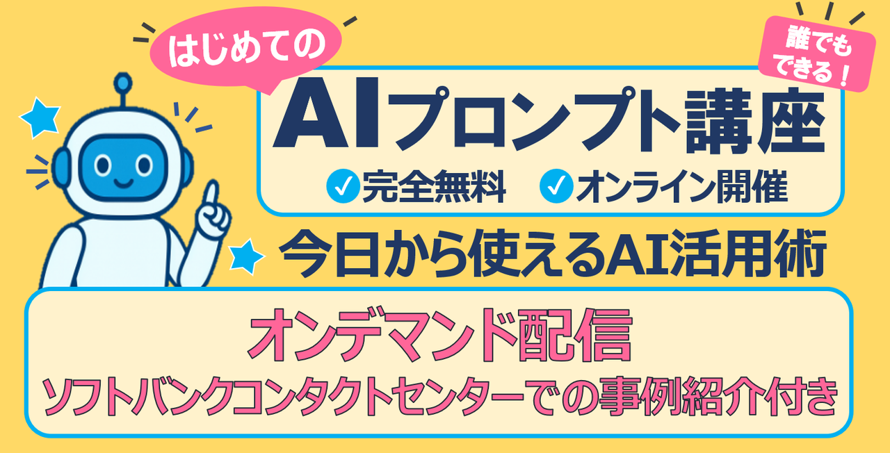 「生成AIって最近よく聞くけど、実際なにができるの?」 「業務で活かすにはどうすればいいの?」 そんな疑問をお持ちの方にぴったりの、初心者向け生成AIセミナーを開催します! 本セミナーでは、ソフトバンクコンタクトセンターでの実際の活用事例を交えながら、 生成AIの基本から業務活用、AI人材の育成法まで、分かりやすくご紹介します。 # 📌 セミナー内容 ✅ 【ハンズオン】生成AIの基礎と使い方 そもそも生成AIとは? 種類やプロンプトの工夫で業務がどう変わる? ※生成AIツール(ChatGPTなど)をご準備いただくとより実践的です。 # ✅ 【リ...