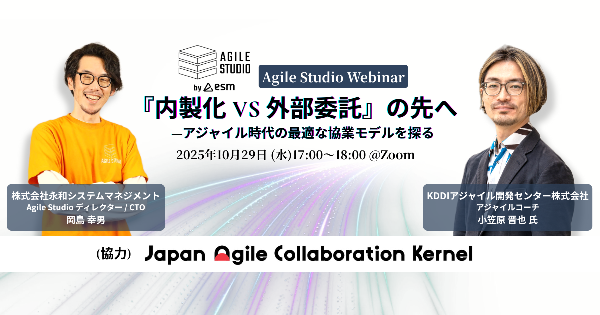 # 概要 外部パートナー(受託)を活用するべきか、それとも内部チーム(内製化)を構築するべきか。この二者択一の議論は、多くの企業が直面する根源的な課題です。しかし、デジタルトランスフォーメーション(DX)が加速する現代において、この問いそのものが時代遅れになりつつあるのではないでしょうか。 本ウェビナーでは、この「内製化 vs 外部委託」という二項対立を乗り越え、これからの時代に求められる新しい協業モデルについて深掘りします。 対談するのは、大企業の中でアジャイルな内製化文化を育み、組織の変革をリードするKDDIアジャイル開発センターの小笠原晋也さんと、伝統的な受託開発モ...