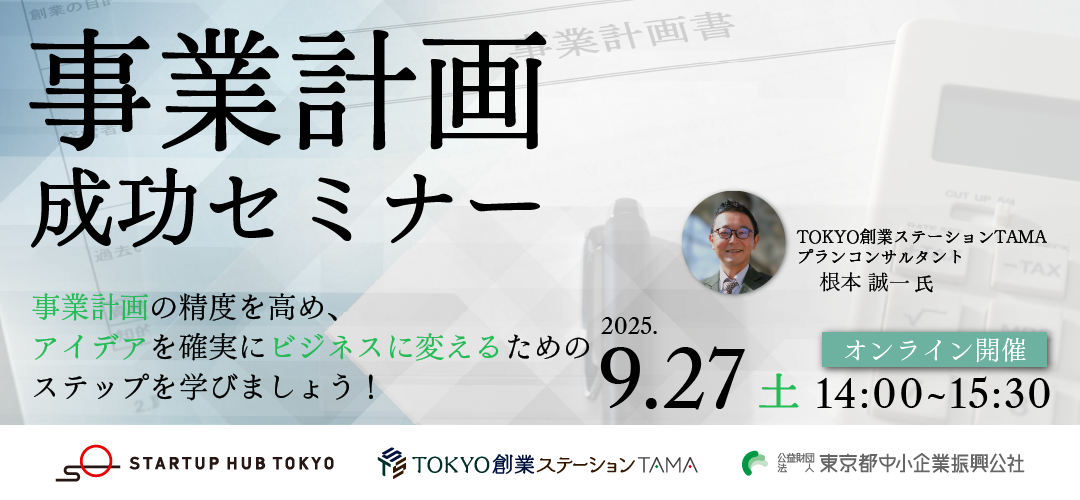 あなたの事業計画の精度を高め、アイデアを確実にビジネスに変えるためにテストマーケティングは有効な手段です。 本セミナーは、事業計画作成の上で欠かせない要素(ターゲット顧客、市場分析、競合分析など)、テストマーケティングを活用して計画を具体化する手法を解説します。 よくある失敗例も交え、テストマーケティングの成功事例、具体的な手法についてプレゼンテーションを行い、質疑応答を通じて参加者の疑問を解決します。 【 イベントの流れ 】 登壇者: 根本誠一 様、 公社担当者様 司会:Startup Hub Tokyo TAMAスタッフ 1.本日のテーマ、イベント趣旨の説明 2.TOKYO創業ステーション施設紹介( 紹介動画 + TOKYO創業ステーション施設役割・サービス等を説明) 3.セミナー 【第1部】 ▼事業計画を成功に導くためのテストマーケティングの活用法 (登壇者:根本 氏) ∟事業計画の重要性とテストマーケティングの役割 ∟成功事例の紹介 ∟具体的な手法とプラン作成のポイント ∟質疑応答 ▼テストマーケティング調査支援概要説明(登壇者:プランニングポート担当者) ∟支援内容の詳細説明 ∟質疑応答 【第2部】*当日現地参加者対象 ▼現地相談会(プランニングポート担当者、Startup Hub Tokyo TAMAスタッフ) ∟テストマーケティング会場見学 ∟参加者が個別に相談できる時間を提供 ∟専門家によるアドバイス