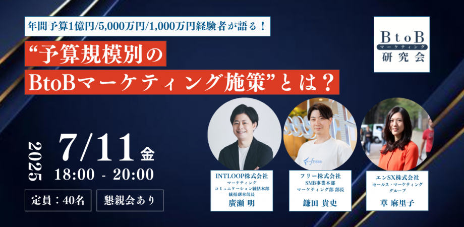 満員御礼2025年7月11日追記:参加者が上限に達しましたので予約受付を終了いたしました。今後も定期的にtoBマーケター向けイベントを開催して参ります。『BtoBマーケティング研究... powered by Peatix : More than a ticket.