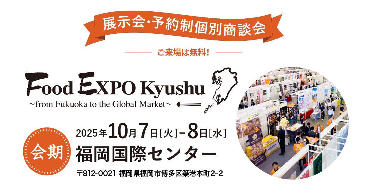 FOOD EXPO Kyushu(フードエキスポ九州) は九州の新たなチャレンジを応援します!世界的にも優れた高付加価値の九州産農林水産物、加工食品を国内外に発信し、地場食品関連企業の更なる売上向上、販路拡大及び地域経済の振興を図ることを目的として、食の展示会や商談会等を実施いたします。