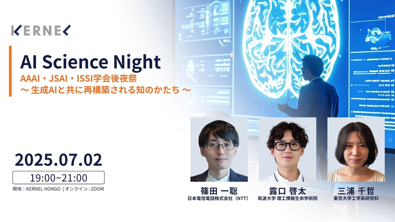 生成AIの進展により、「心」や「知」をいかにAIとともに捉え直すかが問われています。人の心的状態をモデル化するLLMのロールプレイング活用、未来の自己との感情的対話を支援する執筆システム、そして学術知の流通や査読者の価値観を定量的に分析する試みなど、AI技術は認知・感情・知識の領域へと広がりつつあります。 本イベントでは、AAAI・JSAI・ISSIなどで発表された最先端の研究をもとに、「生成AIと人間の対話」「知識の流通と評価」「学術インフラの再設計」といった視点から、AI時代における"心"と"知"の新しいかたちを探ります。 イベント後半には、登壇者や参加者同士のカジュアルなネット...