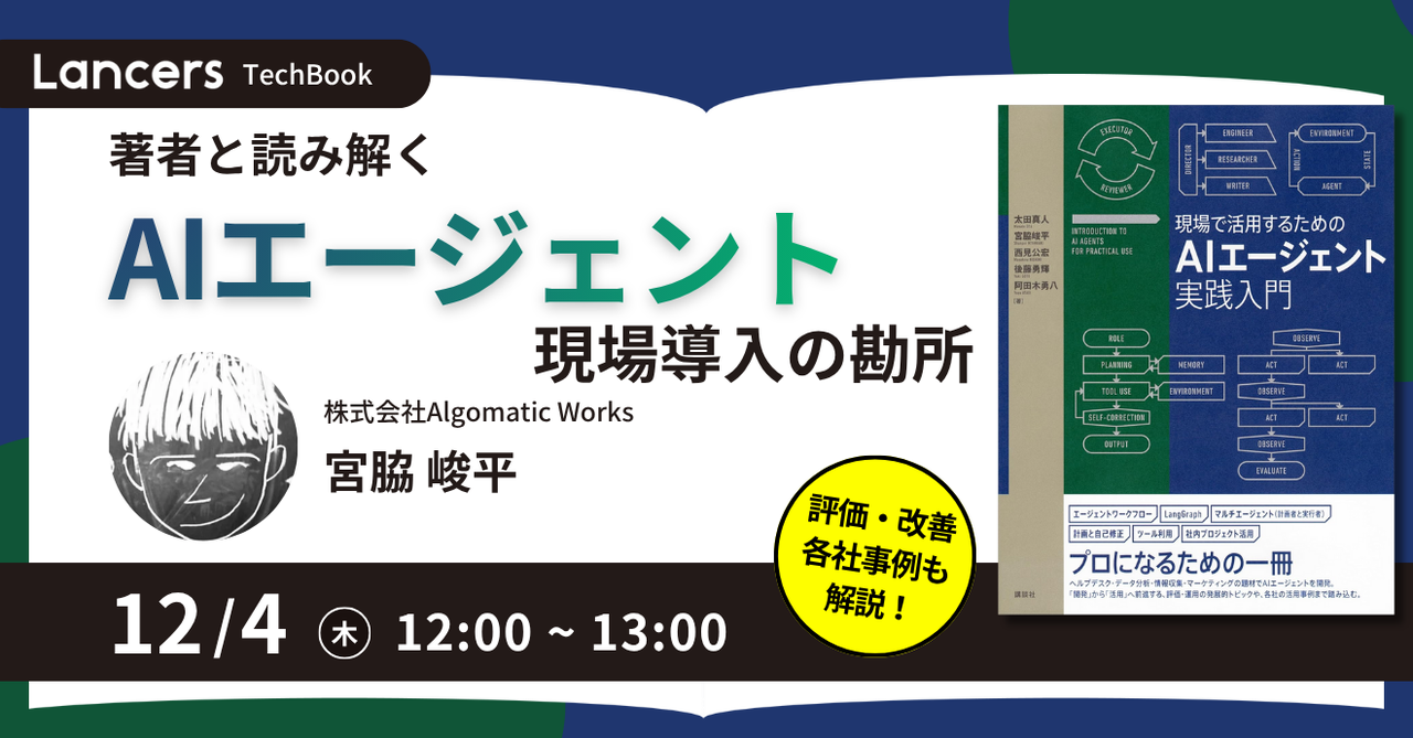 ### 【本イベントについて📕】 技術の進化が止まらない今、「あの本、気になってたけど読めていない」「読んだけど、実務でどう活かせばいいんだろう」と感じることはありませんか? Lancers Tech Bookでは、話題の技術書やベストセラー、注目の新作を執筆した著者本人に登壇いただき、書籍の要点はもちろん、本では語り切れなかった実践的な知見や最新の技術動向まで、直接お話いただきます。 技術背景、設計の意図、実務での応用ポイントなど、著者だからこそ語れる視点に触れることで、明日からの開発に活かせる具体的なTipsを知ることができます。 忙しい日々の中でも、効率よく学びをアップデート...