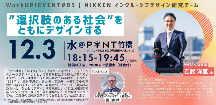 12月3日(水)【WorkUP! EVENT#05 NIKKENインクルーシブデザイン研究チーム主催】 これからの建築や都市を考えるための“インクルーシブデ... powered by Peatix : More than a ticket.