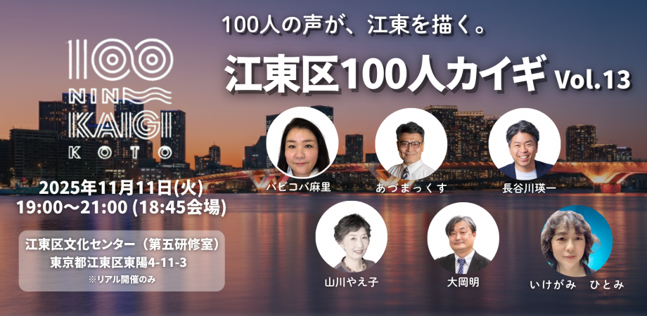 江東区100人カイギが再始動【 第2回 】昨年、Vol.11で休止していた江東区100人カイギですが、運営メンバーが変わり再始動いたします。 江東区で活動、生活をしている方や過去に... powered by Peatix : More than a ticket.