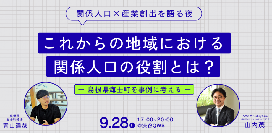 ー「関係人口×産業創出」を語る夜ーこれからの地域における関係人口の役割とは? 島根県隠岐諸島にある人口2300人ほどの離島である島根県海士町(あまちょう)。海士町では「... powered by Peatix : More than a ticket.