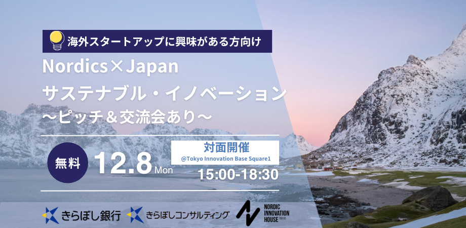 🌍 Nordics×Japan サステナブル・イノベーション ~ピッチ&交流会あり~ \12月8日15時開催!オープンイノベーションに取り組む企業へ/ 🌿北欧スタートア... powered by Peatix : More than a ticket.