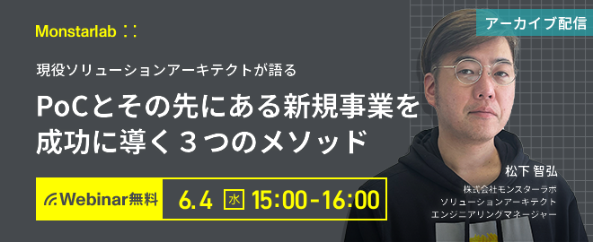 本企画の背景 急速に変化する社会に合わせて、デジタルテクノロジーを活用したビジネスの変革が求められる現在。どのような業界も成長のため、あるいは競合他社に負けないために新しい取り組みを進めようとしています。 そんな新規事業を企画、検討中の方々は、PoCについてどのような印象をお持ちでしょうか? 昨今の新規事業開発においては、最新AI技術を既存業務に適用させるなど、革新的な技術を活用したい反面「それらを適切に活用できるのか?」「リスクはないのか?」といった不安を抱えている方も少なくないでしょう。 このような現代のITサービス開発において、初期段階でアイディエーションやPoCを導入する...