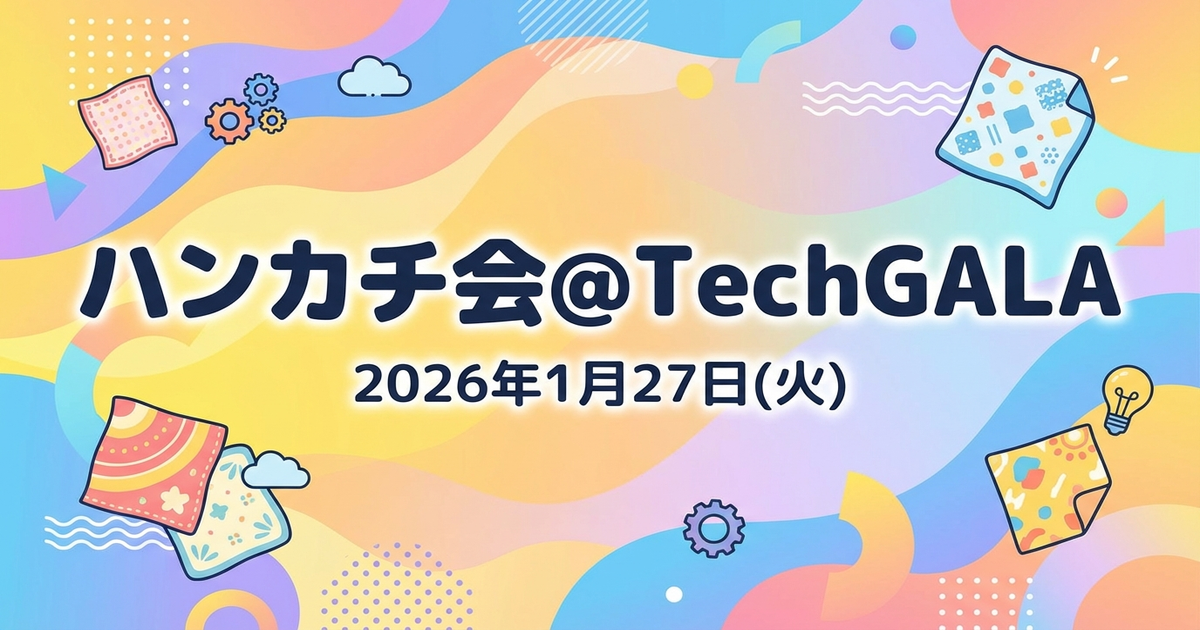 当イベントは「ハンカチ世代」と呼ばれる1988年前後の1987-1989年生まれのTechGALA参加者で集まり、交流を深める会です。