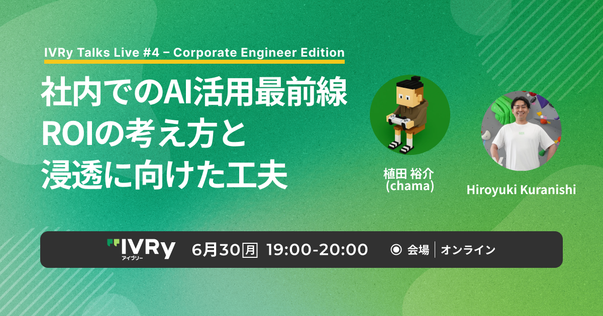 # 🚀 コーポレートITが推進するAI活用最前線 ── 浸透に向けた工夫、成果につながる活用 生成AIや業務自動化ツールが急速に進化する中、日々の業務の中でAIを「どう活用するか」は多くの企業にとって重要なテーマです。 IVRyでは、まだ多くの企業で導入が進んでいなかった比較的早い時期からAIツールへの投資判断を行い、Gemini、Notion AI、Slack AIなどの導入をいち早く進めてきました。 AIを「使えるから使う」から、「成果につながる活用」へ。 社内のAI活用浸透に向けて、コーポレートIT部門がどのような意思決定や取り組みをどのように進めてきたか、具体的...