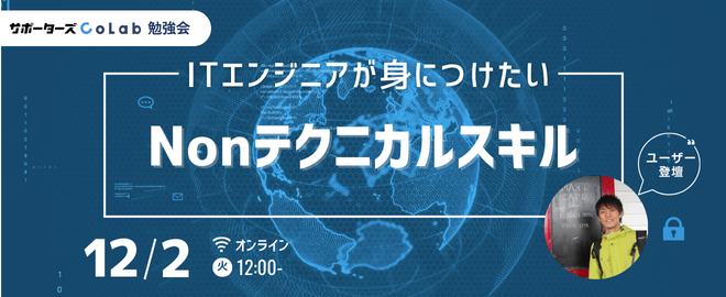 ## 📍 イベント概要 ソフトウェアエンジニアとしてキャリアをスタートさせ、これまで技術力を身につけたいと考えてきました。 開発(設計~実装~テスト)や保守運用業務を通してさまざまな技術について学んできましたが、技術以外のスキルも身につけないと業務を円滑に進めるのが難しいと感じることが多々ありました。 そこで、技術以外のスキル(Nonテクニカルスキル)について研修や書籍などで学び、業務に活かしてきました。 特に重要だと感じているNonテクニカルスキルについて磨く方法を含め、ご紹介します。 ※本勉強会は、サポーターズCoLabのユーザーが講師を務める勉強会です ※サポーターズC...