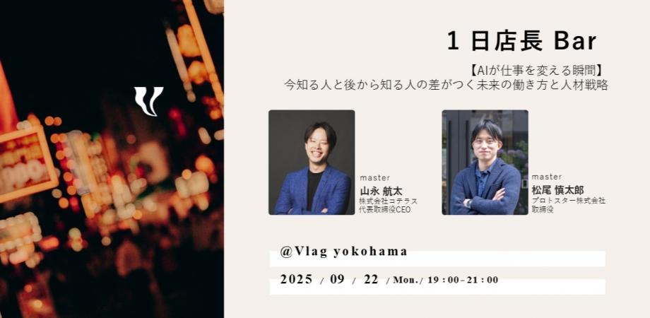 1日店長Barは、日替わりのホストとドリンクを飲みながらカジュアルにつながる場です。 今回は、株式会社コテラス 代表取締役CEO 山永 航太さんとプロトスター株式会社 取締役 松尾... powered by Peatix : More than a ticket.