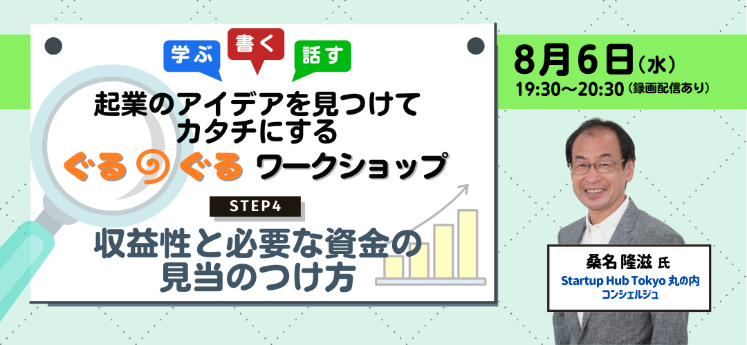 起業のアイデアを見つけてカタチにするぐるぐるワークショップ<STEP4:収益性と必要な資金の見当のつけ方>