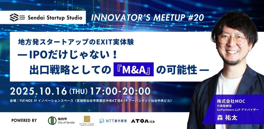◾️ INNOVATOR'S MEETUP とは? 「INNOVATOR'S MEETUP」は、スタートアップのためのワンストップ支援拠点「仙台スタートアップスタジオ」で開催される... powered by Peatix : More than a ticket.