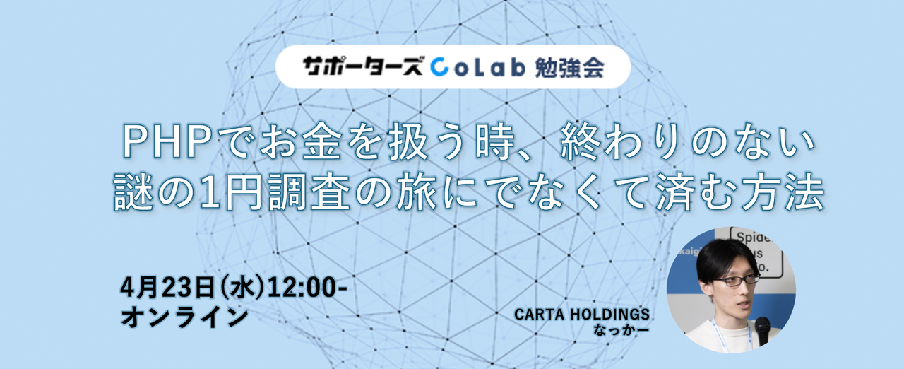 ## 📍 イベント概要 普段開発している時はあまり意識せずに数値を型変換することがあると思いますが、そこには思いもよらぬ潜在的なバグに繋がる挙動が潜んでいます。 小数を扱う時、PHPの数値仕様をしっかり理解した上で作らないと、後々大変なことになってしまう可能性があります。 小数点以下の誤差によって1円が消えたり増えたりしてしまうことがあり、1円の行方を巡って終わりのない、解決もしない調査の旅に身を投じることになるでしょう。 それが今なのか、いつなのかは分かりませんが、知っていれば防げる問題でもあります。 本セッションでは数値にはどんな問題があり、扱う時に何を気をつける必要があっ...