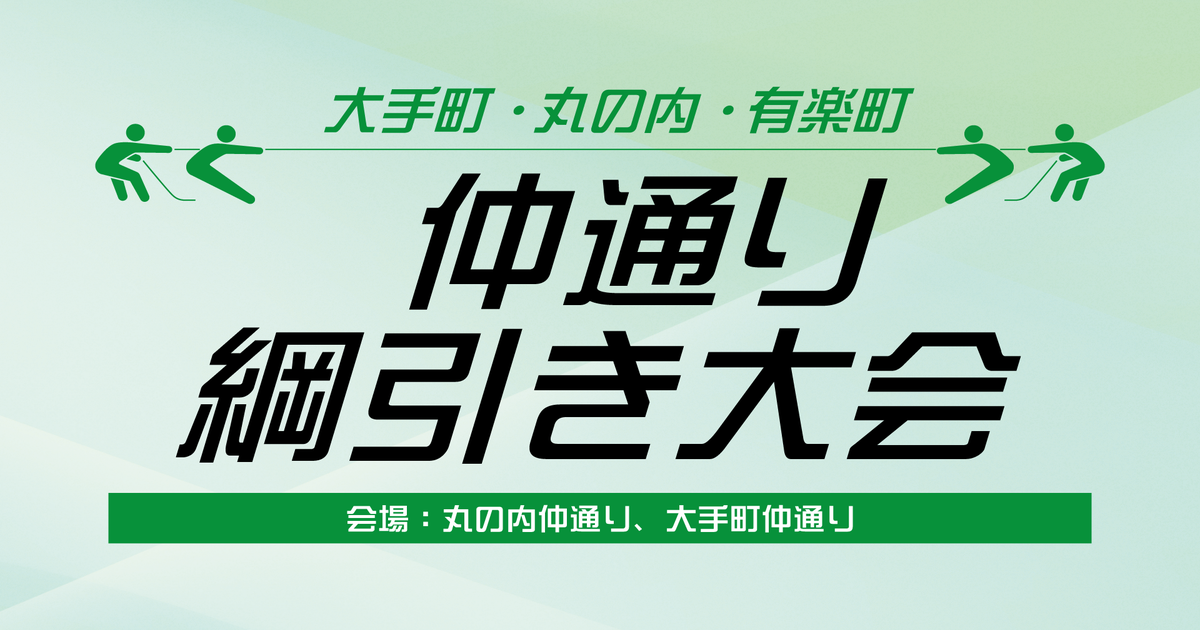 ※「仲通り綱引き大会2025」はエントリー受付終了しました。たくさんのご応募ありがとうございました。今年も開催します!丸の内の風物詩「大手町・丸の内・有楽町仲通り綱引き大会2025」。大手町・丸の内・有楽町エリアでは、企業・就業者の健康づくり促進や交流を目的に2017年から今回で9回目の開催となります。部署やチームの垣根を越えて、上司・先輩・後輩・新入社員同士のコミュニケーション活動として、働きが
