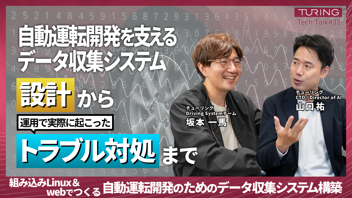## 本イベントについて チューリングでは、自動運転開発のためのLinuxベースのデータ収集システムを運用しています。また、データ収集システムのUI部分は、組み込みLinux上で動作するWebアプリケーションとして実装しています。 本セッションでは、データ収集システムの全体像と、組み込みLinux&Webアプリケーションで構築されたシステムの運用・保守のポイントをご紹介します。 ## 発表者のプロフィール 坂本 一馬 Kazuma Sakamoto | Driving Systemチーム シニアエンジニア 新卒でソニー株式会社に入社。モニター・プロジェクターのソフトウェ...