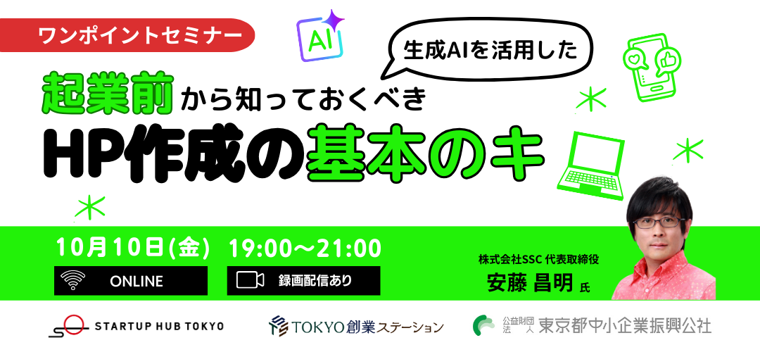 【ワンポイントセミナー】生成AIを活用した起業前から知っておくべきHP作成の基本のキ【録画配信あり】