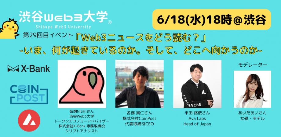 渋谷Web3大学 第29回目イベント「Web3ニュースをどう読む?」 -いま、何が起きているのか。そして、どこへ向かうのか- Web3に特化した渋谷発のプ... powered by Peatix : More than a ticket.