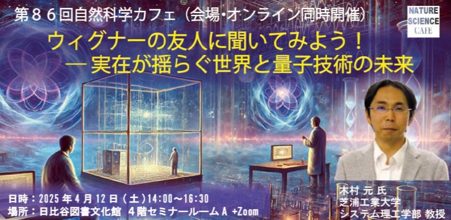 第86回自然科学カフェ(会場・オンライン同時開催)テーマ:ウィグナーの友人に聞いてみよう!― 実在が揺らぐ世界と量子技術の未来 原子などのミクロな世界を説明する量子力学は、私たちの... powered by Peatix : More than a ticket.