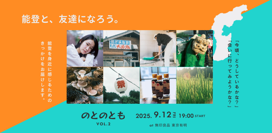 《のとのとも vol.2》 今年1⽉に都内で⾏われたイベント「のとのとも」。 その第2弾を、9⽉に無印良品 東京有明店にて開催します。 ... powered by Peatix : More than a ticket.